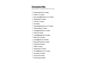 購読解除だけでなく、メールの購読解除ツールは、特定の送信者からのすべてのメールを一度に削除できる自動メールクリーンアップ機能も提供しています。この機能は受信トレイの管理を簡素化するだけでなく、不要なプロモーションメールやニュースレターからの気を散らす要素を排除することで生産性を向上させます。全体として、この無料ツールはメールコミュニケーションの管理を取り戻したい人にとって貴重な追加機能です。
